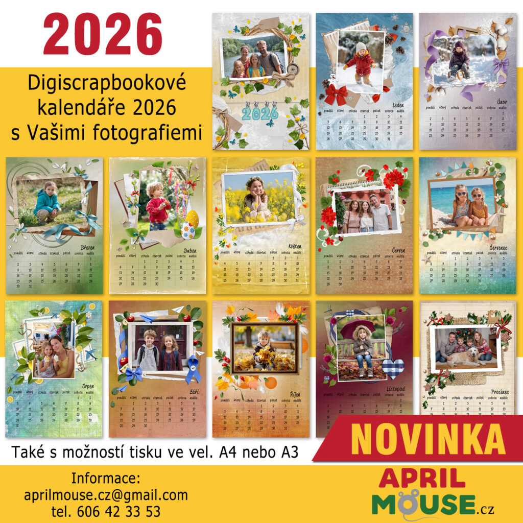 ÚPLNĚ NOVÝ DIGISCRAPBOOKOVÝ KALENDÁŘ 2026 – CENA 390,-