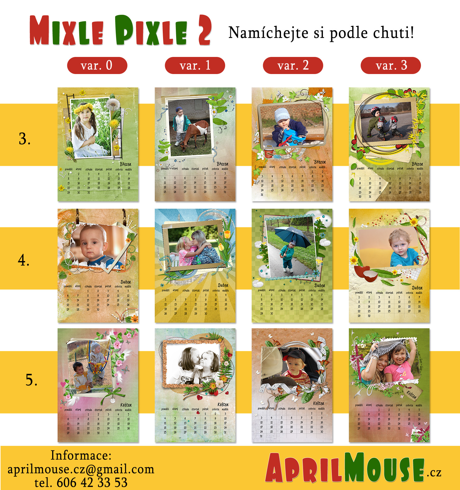 Nabízím i možnost sestavení vlastního kalendáře MIXLE PIXLE podle Vašeho výběru, letošní nabídku variant si můžete rozkliknout níže.